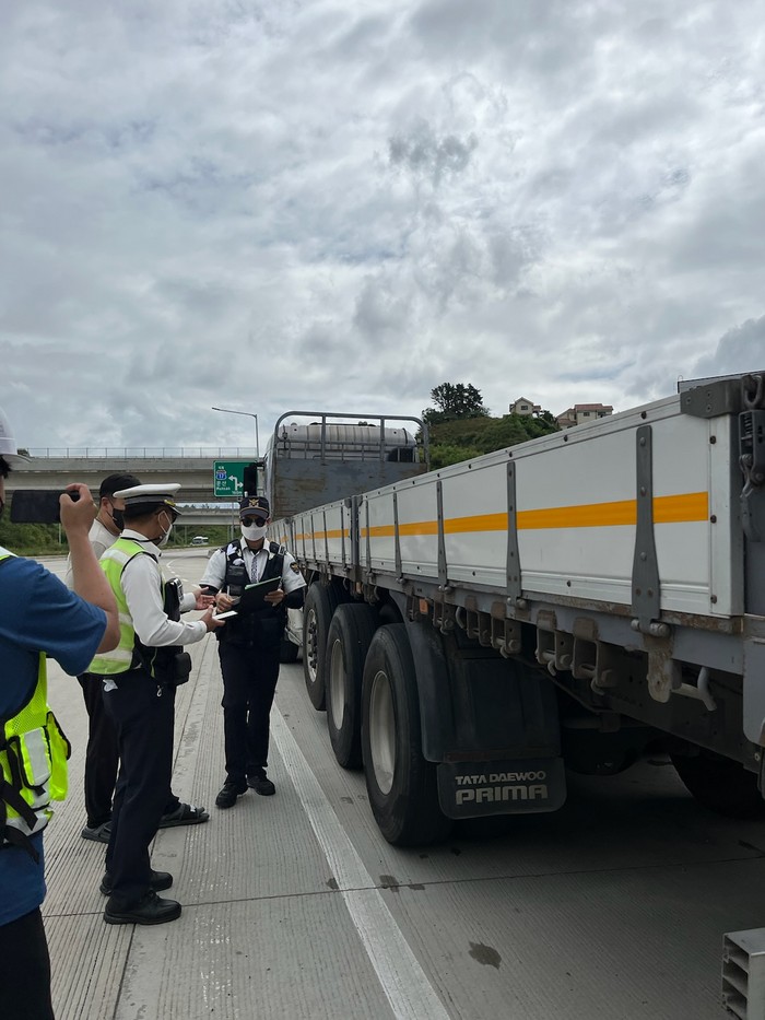 단속 결과 판스프링 절손 차량 1대를 포함하여, 번호판 위반 3건, 안전기준 위반 11건, 도로교통법 위반(적재불량) 1건 등 총 16건의 위반사항을 적발하여 13건에 대해서는 현장 계도 조치하였으며, 번호판 위반 등 2건에 대해서는 행정조치를 할 예정이다.
