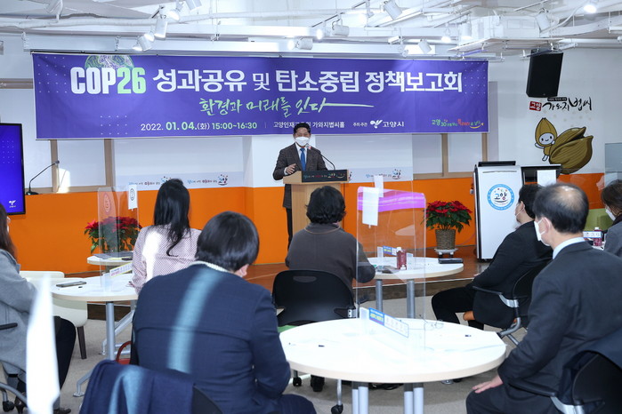 [부자동네타임즈 김인수기자] 고양시가 지난 4일 고양인재교육원에서 ‘COP26 성과공유 및 탄소중립정책보고회’를 개최했다.