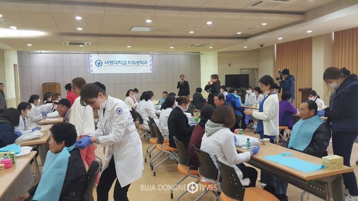 봉사단은 어르신들이 구강질환을 예방할 수 있도록 올바른 잇솔질 안내, 틀니세척, 잇몸마사지, 불소도포 등 구강건강관리 및 구강보건교육을 1대 1 맞춤형으로 진행해 참여자들에게 큰 호응을 얻었다.