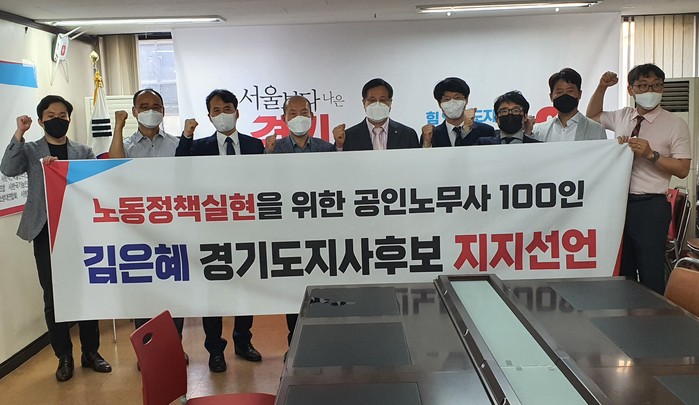 [부자동네타임즈 김인수기자] 지난 18일, 노동분야 전문가 단체인 ‘노동정책 실현을 위한 100인의 공인노무사 모임’을 대표한 9인이 국민의힘 경기도당사에서 국민의힘 경기도지사 김은혜 후보를 지지 선언했다.