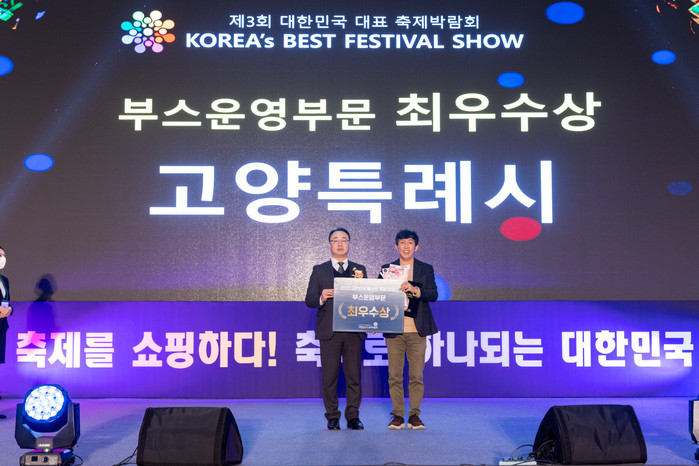 [부자동네타임즈 김인수기자] 고양특례시·고양국제꽃박람회(이사장 이동환)는 부산 벡스코에서 열린 제3회 대한민국 대표 축제 박람회에 고양시 대표 행사인 고양국제꽃박람회를 중심으로 참여해 부스 운영부문 ‘최우수상’을 수상했다.