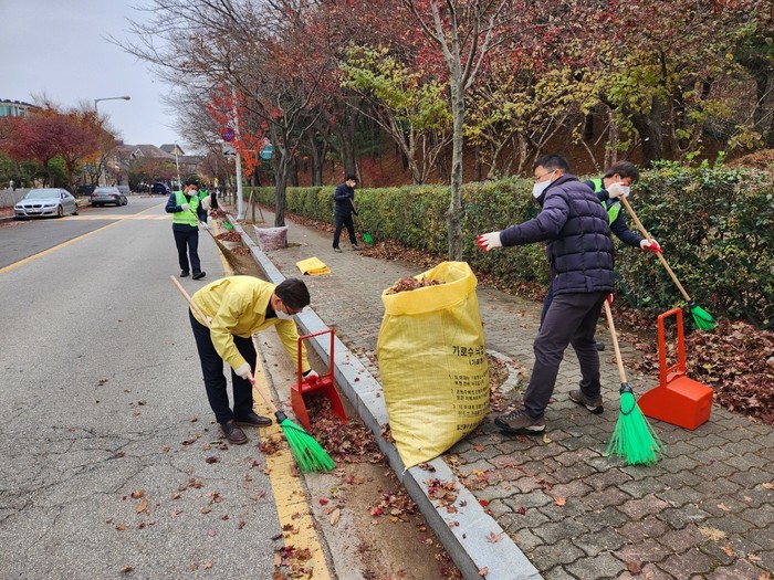 가로수의 떨어진 낙엽들이 빗물받이를 막아 도로가 침수되는 상황이 발생하지 않도록 선제적으로 낙엽을 수거하고 배수로를 정비해 침수를 사전 예방하기 위함이다.