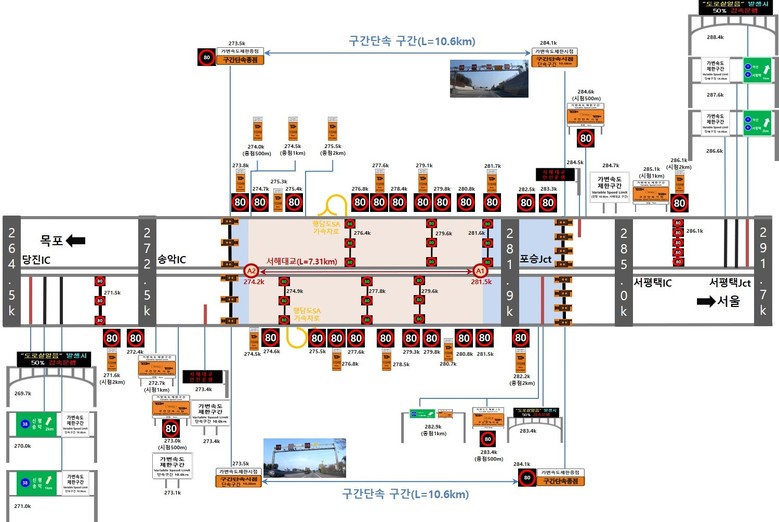 서해안고속도로 당진IC~서평택IC 가변형 속도제한시스템은 2020년 1월에 설치를 시작하여 2024년 12월에 설치를 완료하고 계도기간을 거쳐 올해 3월 1일 본격 운영에 들어간다. 운전자는 가변형 속도제한 표지가 제시하는 속도에 맞춰 감속 운전해야 하며 위반 시 예외 없이 단속될 예정이다.