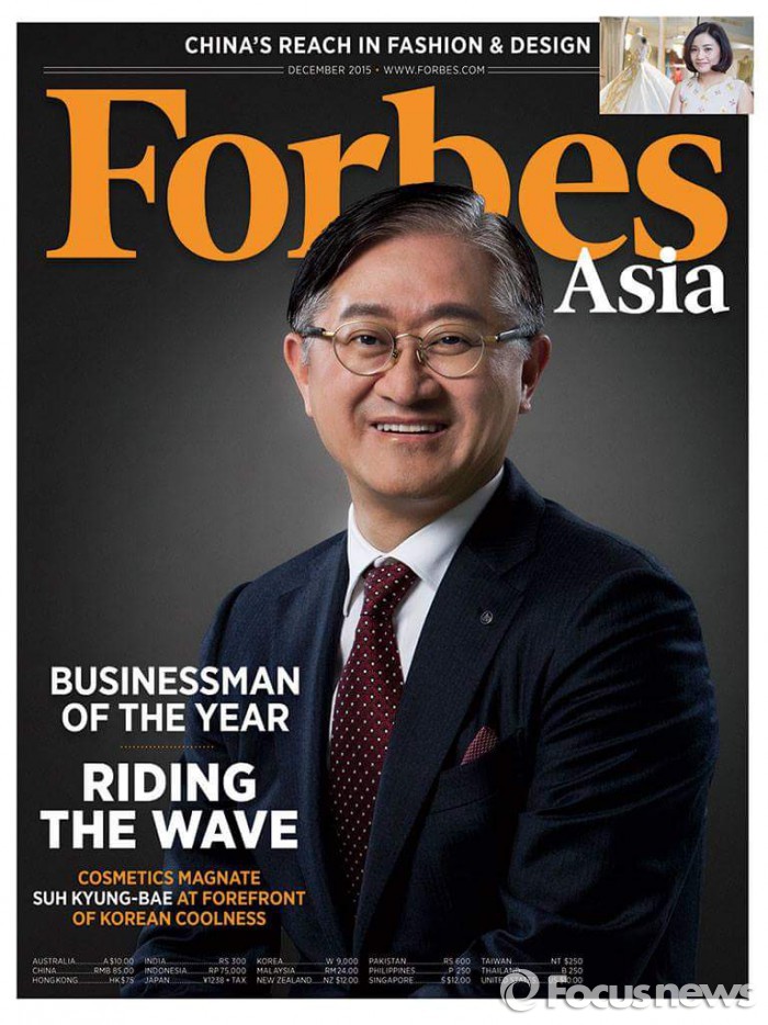 | △ 서경배 아모레퍼시픽 회장이 '2015 올해의 기업인'으로 선정돼 게재된 '포브스 아시아 12월호' 표지. <사진제공=아모레퍼시픽그룹> |