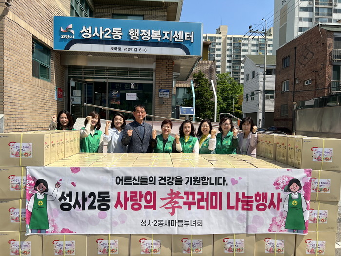 [부자동네타임즈 김인수기자] 고양특례시 성사2동 새마을부녀회는 지난 8일 어버이날을 맞이하여 관내 어르신들을 대상으로 ‘효(孝)꾸러미’ 나눔 행사를 실시했다.