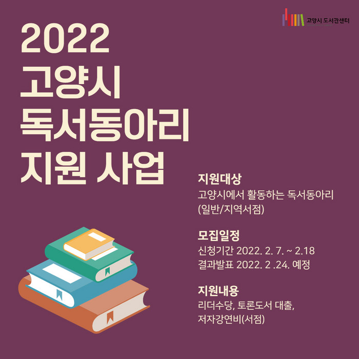 [부자동네타임즈 김인수기자] 책 읽는 도시를 지향하는 고양시가 2월 7일(월)부터 2월 18일(금)까지 독서동아리 지원 사업 공모를 실시한다.