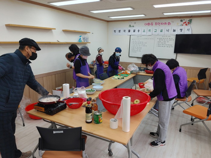 대화동 주민자치회는 2022년 도시농업 그냥드림텃밭 공모사업으로 조성된 이웃사랑 나눔 텃밭(일산서구 구산동 1294)을 통장협의회와 공동으로 정성스럽게 경작하여 수확한 작물(표고버섯, 당근 등)을 활용해 구절판과 버섯 탕수를 만들어 관내 경로당에 주민자치위원들이 직접 전달하였다.