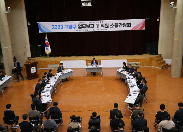 [부자동네타임즈 김인수기자] 고양특례시 덕양구(구청장 김효상)는 지난 13일, 오전 10시에 덕양구청 대회의실에서 적극적인 업무 추진을 위한 ‘2023 주요업무보고 및 직원 소통간담회’를 개최했다.