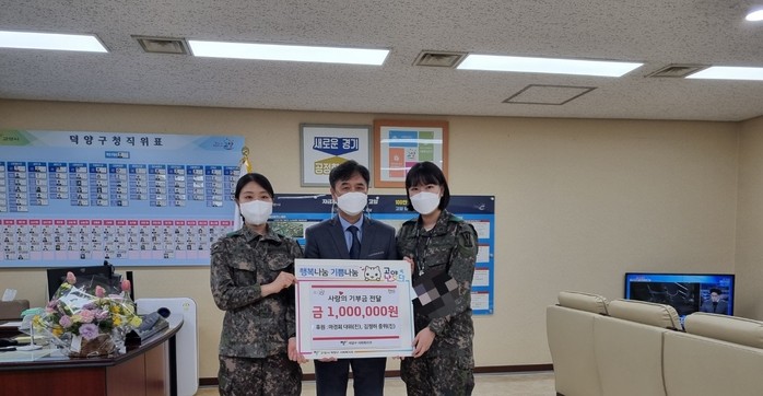 마경희 대위(진), 김정하 중위(진)는 “코로나19 장기화로 힘든 시기에 어려움을 겪고 있는 저소득 가정에 조금이나마 힘이 돼 드리고 싶어 기부를 하게 되었다”고 밝혔다.