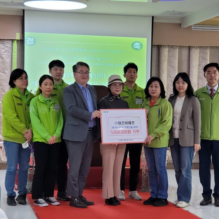 [부자동네타임즈 김인수기자] 고양특례시 가좌동 행정복지센터는 ㈜태건비에프가 제34주년 창립기념일과 제43회 장애인의 날을 맞아 독거노인 및 장애인을 위해 기부금 500만 원을 전달했다고 25일 밝혔다.