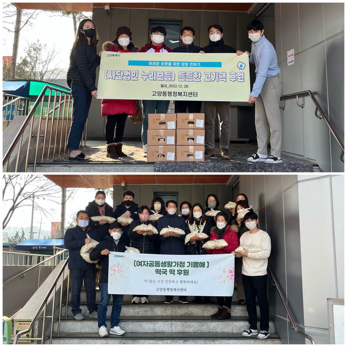 [부자동네타임즈 김인수기자] 고양특례시 고양동 행정복지센터는 사단법인 ‘누리보듬’(유미정 대표)과 여자공동생활가정 ‘기쁨해’(노순영 원장)으로부터 연말을 맞이해 이웃을 위한 후원이 이어졌다고 밝혔다.