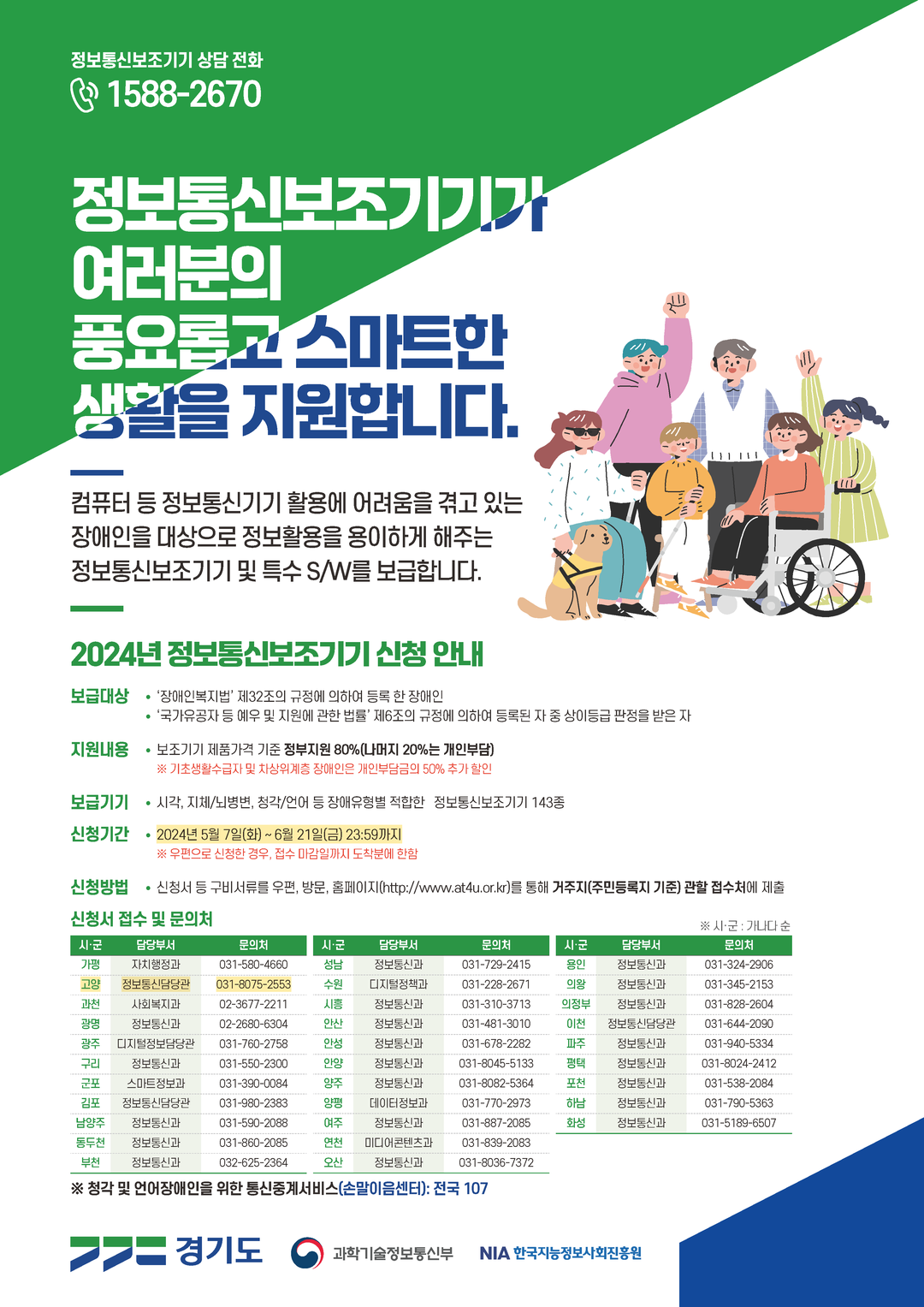자세한 사항은 정보통신보조기기 상담전화(1588-2670) 또는 고양시 정보통신담당관(031-8075-2553)으로 문의하면 안내받을 수 있다.