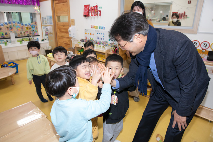 이동환 시장은 원아 한명씩 눈을 마주치며 원아들이 건강하게 자라길 응원하고, 교직원들의 입장에서 어린이집 운영에 대한 다양한 의견을 청취하며 안전한 보육환경을 만들 것을 다짐했다.