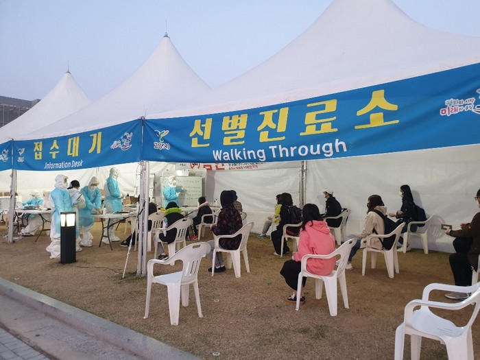 시는 3월 31일 기준 확진자 총 27명 중 해외 입국자가 절반이 넘는 14명까지 늘어나면서 해외 입국자들에 대한 철저한 관리를 위해 지난 4월 1일부터 인천공항에 도착하는 모든 해외 입국자들을 대상으로 킨텍스 선별진료소에서 코로나19 검사를 실시했다.