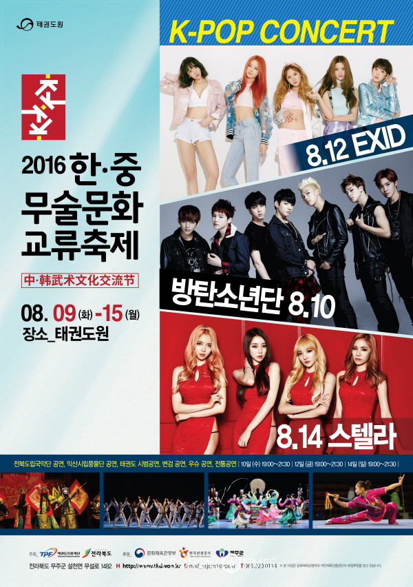 태권도진흥재단과 전북도가 주최하고 문화체육관광부와 무주군, 한국관광공사가 후원하는 한·중 무술문화교류축제는 15일까지 무주 태권도원에서 열린다.