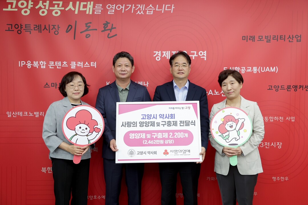 전달식에는 이동환 고양특례시장과 고양시 약사회 김계성 회장, 정정선 부회장 등 관계자 4명과 경기북부공동모금회 이경아 본부장이 함께 했다.