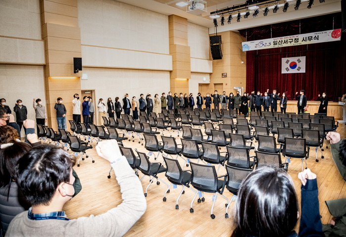 이날 시무식은 구청 대강당에서 일산서구청 직원 100여명이 참석한 가운데 열렸으며, 코로나19 방역수칙을 지키며 진행됐다.