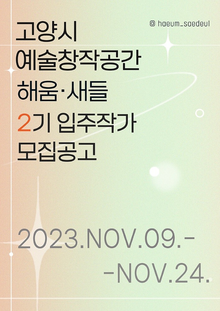 고양특례시가 운영하는 예술 창작 공간(레지던시)인 해움과 새들에서는 2022년부터 1기 입주작가들이 시민과 연계한 다양한 프로젝트를 선보여 왔다.