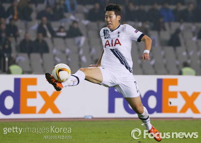 | △ <바쿠/아제르바이잔=게티/포커스뉴스> 토트넘 소속 손흥민이 11월27일(한국시간) 열린 카라바흐와의 유로파리그 조별라운드 경기에서 드리블하고 있다. (C)게티이미지/멀티비츠 |