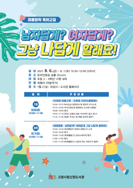 [부자동네타임즈 김인수기자] 고양시 신원도서관에서는 8월 6일과 7일 이틀간 초등 3~4학년을 대상으로 여름방학 독서교실을 운영한다.