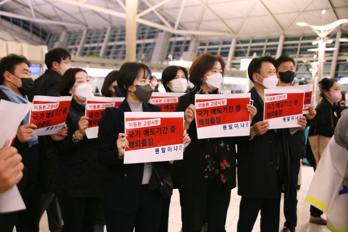 이러한 상황에서 지난 4일 고양시의회 더불어민주당 소속의원들은 성명서를 통해 "유명을 달리한 '이태원 참사' 희생자 156명의 명복을 빌고 유족들에게 깊은 애도를 전한다"며 "애도기간중 이동환 시장의 해외출장을 강력히 규탄한다."고 밝혔다.