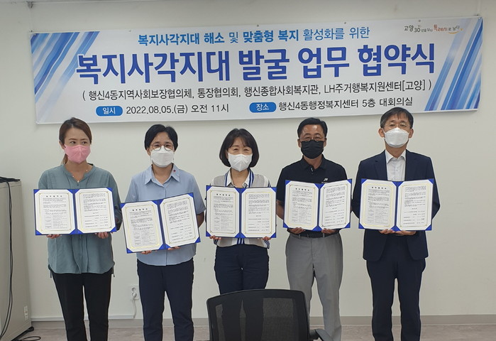 [부자동네타임즈 김인수기자] 고양특례시 덕양구 행신4동행정복지센터(동장 정은숙)는 복지사각지대 해소 및 맞춤형 복지 활성화를 위해 지난 5일‘복지사각지대 발굴 업무 협약식’을 개최했다.
