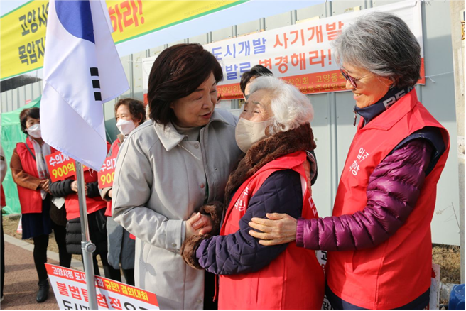 [부자동네타임즈 = 김인수 기자] 녹색정의당 심상정 국회의원이 지난 4일 22대 총선 고양갑 지역 출마 기자회견을 한 후, 첫 번째 일정으로 목암지구 지역주택조합원들의 농성장을 방문했다.