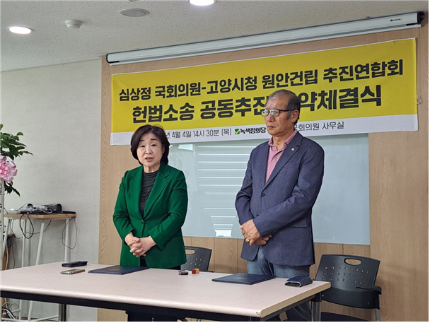 [부자동네타임즈 = 김인수 기자] 녹색정의당 심상정 국회의원과 고양시청 원안건립 추진연합회(원안건립 추진연합회)가 신청사 주교동 원안 착공을 위해, 함께 헌법소송을 추진하며, 그 외 다양한 법률적 대응 등에 협력하기로 포괄적 정책협약을 체결했다.