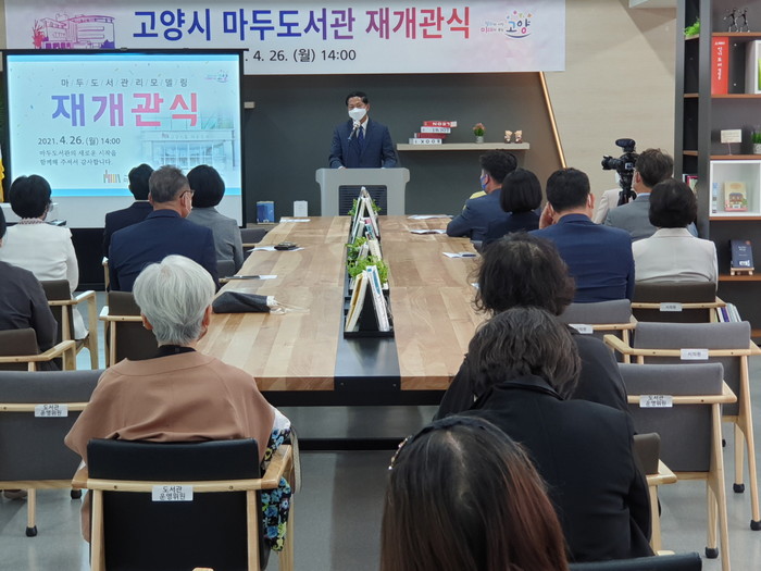개관에 앞서 지난 26일 마두도서관에서 재개관식이 열렸다. 이재준 고양시장과 시의회의장, 국회의원, 시·도의원 등이 참석했다. 식은 코로나19에 따른 방역지침을 철저히 준수하며 소규모 행사로 안전하게 진행됐다.