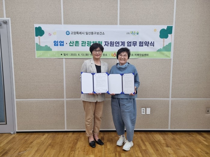 [부자동네타임즈 김인수기자] 일산동구보건소가 지난 13일 ㈜작은숲과 취약계층 어르신의 건강증진을 위한 ‘임업·산촌 관광체험교육’ 업무협약을 체결했다.
