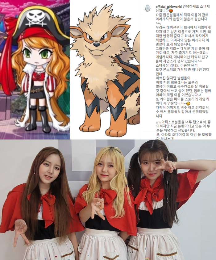 이 부분에서 "sm 아티스트의 이름을 차용했다"며 강한 질책과 함께 '아라' 또한 오마이걸의 '아린'에서 모방했다는 댓글이 공식 채널에 이어지며 해명에 나선 것이다.