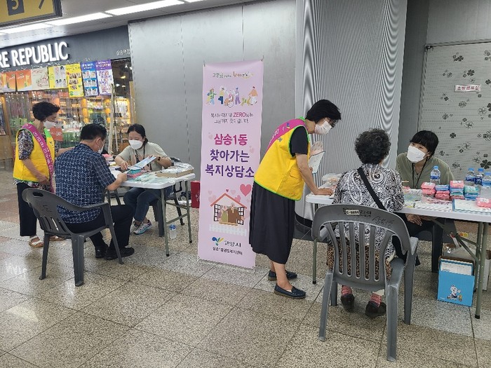 [부자동네타임즈 김인수기자] 고양시 삼송1동행정복지센터(동장 김동원)는 지난 21일 삼송역에서 동 지역사회보장협의체와 고양시덕양노인종합복지관과 함께 복지서비스 안내 및 복지사각지대 발굴을 위한 찾아가는 복지상담소를 실시했다고 밝혔다.