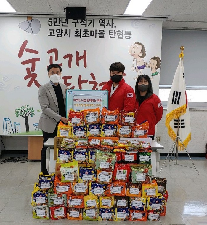 [부자동네타임즈 김인수기자] 고양시 일산서구 탄현1동 행정복지센터(동장 박상원)에서는 지난 7일 경희대다원태권도장으로부터 어려운 이웃들에게 나누어 달라며 ‘이웃사랑 행복라면’ 570개를 전달받았다고 밝혔다.
