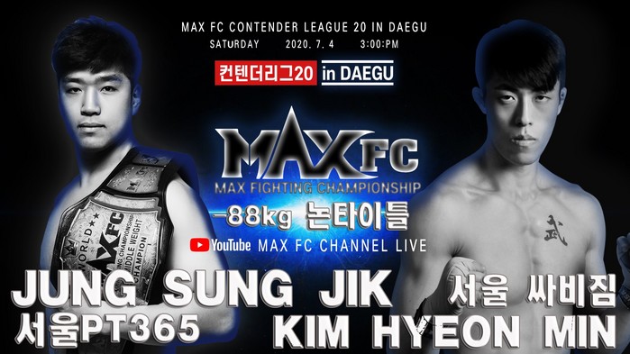 한편 ‘대구협회장기 무에타이 대회 및 맥스 FC 컨텐더리그 20’은 7월 4일 대구광역시 대백프라자에게 열린다. 코로나19 여파로 무관중 경기로 진행되며 맥스 FC 공식 유튜브 채널에서 생중계된다. 메인이벤트로 미들급 챔피언 김준화가 대구의 신예 이명준과 논타이틀 매치, 코메인이벤트로 슈퍼 미들급 잠정 챔피언 정성직과 김현민의 논타이틀 매치 등을 진행한다.