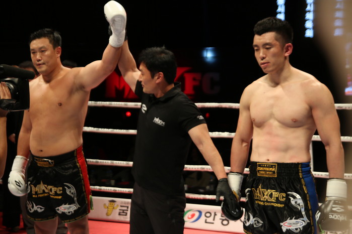지난 4월 권장원을 4라운드 KO로 누르고 MAX FC 헤비급 챔피언에 오른 명현만은 이날 1차 방어에 나섰다. 경기는 시시했다. 도전자 야마다는 헤비급 파이터 치고 체격이 너무 작았다. 경기 전 명현만을 보고 “저렇게 큰 선수는 처음 본다”고 토로할 정도였다.