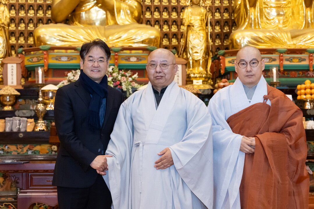 [사진설명] 왼쪽부터 이동환 고양특례시장, 대한불교 조계종 길상사 주지 보산 스님, 대한불교조계종 여래사 주지 각심 스님.