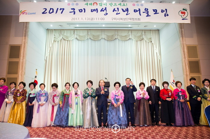 [부자동네타임즈 서소민 기자]구미시여성단체협의회(회장 이재숙)는 2017. 1. 13.(금) 11:00 남유진 시장, 김익수 의장 및 이진우 소방서장, 기관단체장과 역대 여성단체회장, 21개 여성단체 회원 250여명이 참석한 가운데 『2017 구미 여성 신년 어울모임』을 개최하였다.