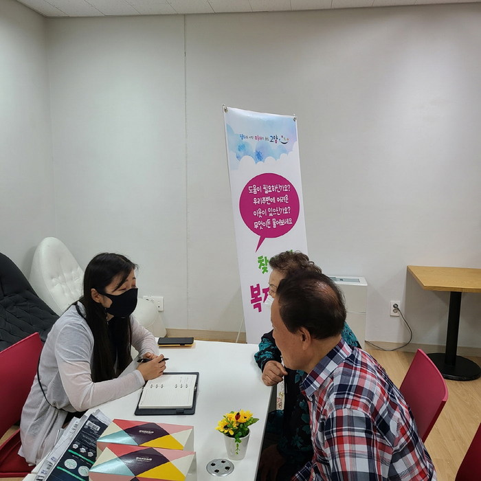 이에 흥도동 행정복지센터는 접근성이 좋은 장소를 선정해 ‘찾아가는 복지상담소’를 설치하고, 코로나19 여파로 우울증을 겪는 등 심신이 지쳐있는 어르신들을 대상으로 초기 상담을 진행하는 한편 복지사각지대 및 취약계층에 대한 제보를 받고 있다.