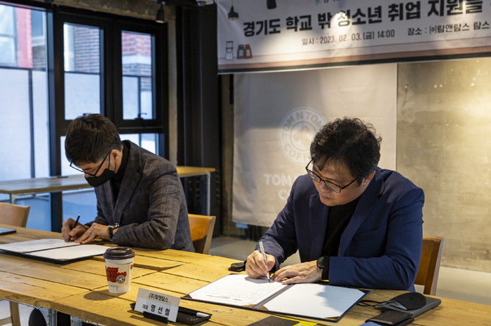 [부자동네타임즈 김인수기자] 재단법인 고양시청소년재단(대표이사 박윤희) 고양시학교밖청소년지원센터 꿈드림(센터장 정상헌, 이하 고양시 꿈드림)은 지난 2월 3일(금), 광진구 ㈜탐앤탐스 탐스커버리 건대점에서 학교 밖 청소년의 자립역량 강화와 취업 연계를 위한 업무 협약을 체결했다고 밝혔다.