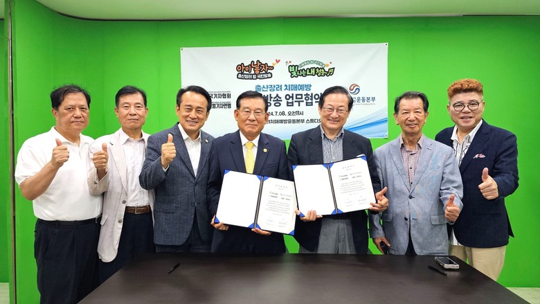 지난 8일 월요일 한국출산장려치매예방운동본부(중앙회장 구천서)와 전국기자협회(회장 민병홍·사무총장 국용호)가 저출산·고령화 사회 예방을 위한 출산 장려 범국민방송 '아이낳자'와 치매 예방 범국민 방송 '빛나는내청춘'의 제작 활성화를 위한 공동 주관 업무 협약을 체결했다.
