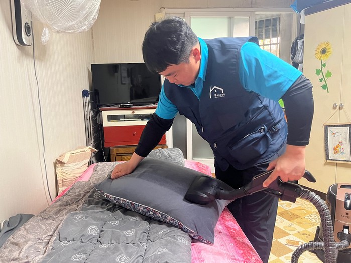 [사진설명] 취약계층 침구류 진드기 제거 작업.