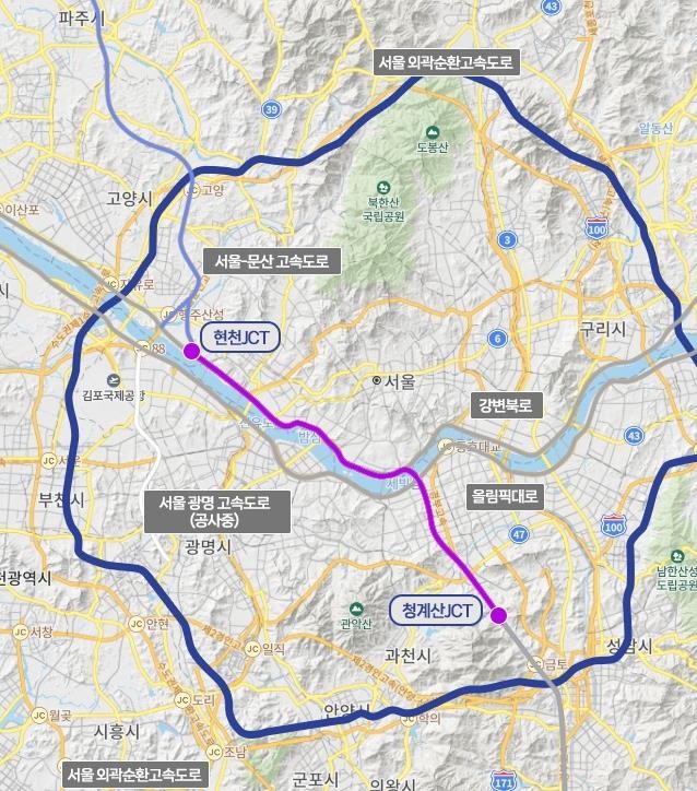 [사진설명] 고양~양재 지하고속도로(보라색)