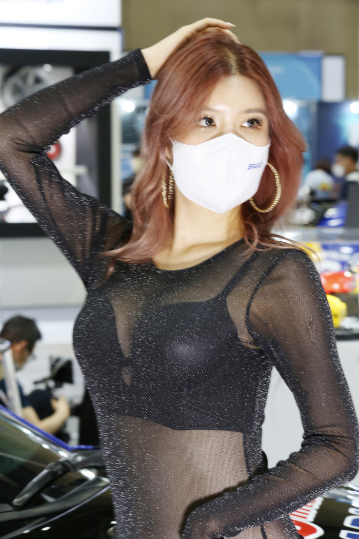[사진설명] 지난 17일 오후 이날 행사에 참석한 레이싱모델 주나일이 포즈를 잡고 있다.