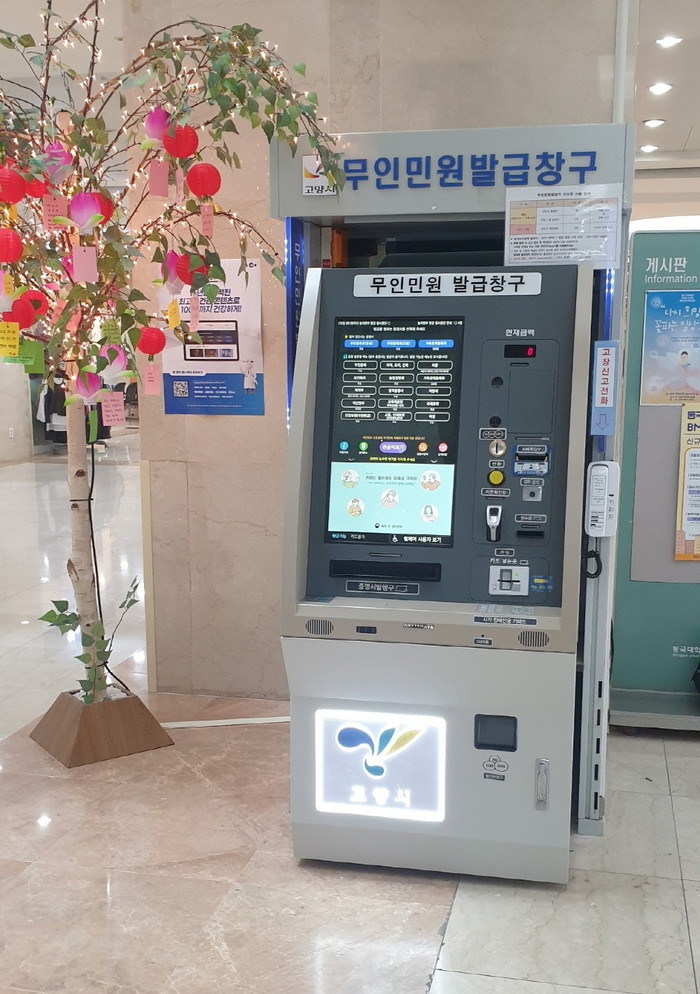 [부자동네타임즈 김인수기자] 고양시 일산동구는 12일 신속하고 편리한 민원서비스 제공을 위해 동국대병원 1층에 설치·운영 중이던 무인민원발급기를 새 기기로 교체했다.