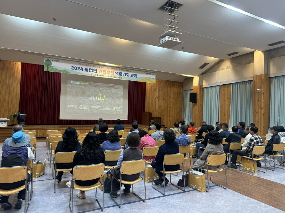 [부자동네타임즈 = 김인수 기자] 고양특례시는 지난 18일 농업기술센터 대강당에서 고양시 농업인 100명을 대상으로 농업현장의 안전실천 문화조성과 농작업 안전보건관리 역량 강화를 위해 ‘2024 농업인 안전실천 역량강화 교육’을 실시했다.