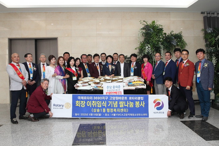 이번 기부는 고양원마운트 로타리클럽의 7대 회장 이·취임식에서 화환 대신 쌀 화환을 받아 삼송1동 어려운 분들을 위해 함께할 것을 약속하며 이·취임식의 의미를 더했다.