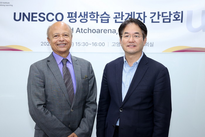 [사진설명] (오른쪽부터)이동환 고양특례시장, 유네스코 평생학습연구소 데이비드 아초아레나 소장.