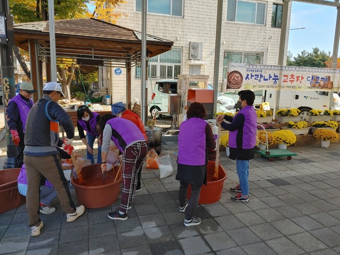 [부자동네타임즈 김인수기자] 대화동 주민자치회(회장 손종환)는 지난 26일 대화동 행정복지센터 옆 가와지광장에서 주민자치회 위원 등 10여 명이 참석한 가운데 고추장을 담가 취약계층 50가구에 전달하는 나눔 행사를 개최하였다.