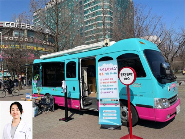 [사진설명] 찾아가는 정신건강 상담소 ‘토닥토닥버스’와 양소영 국민건강보험 일산병원 정신건강의학과전문의.
