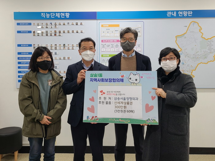 [부자동네타임즈 김인수기자] 고양특례시 삼송1동 행정복지센터는 지난 9일 ‘삼송서울정형외과(김정재 원장)’에서 어려운 이웃을 위해 300만 원 상당의 대형마트 5만 원권 상품권 60매를 기탁했다고 밝혔다.